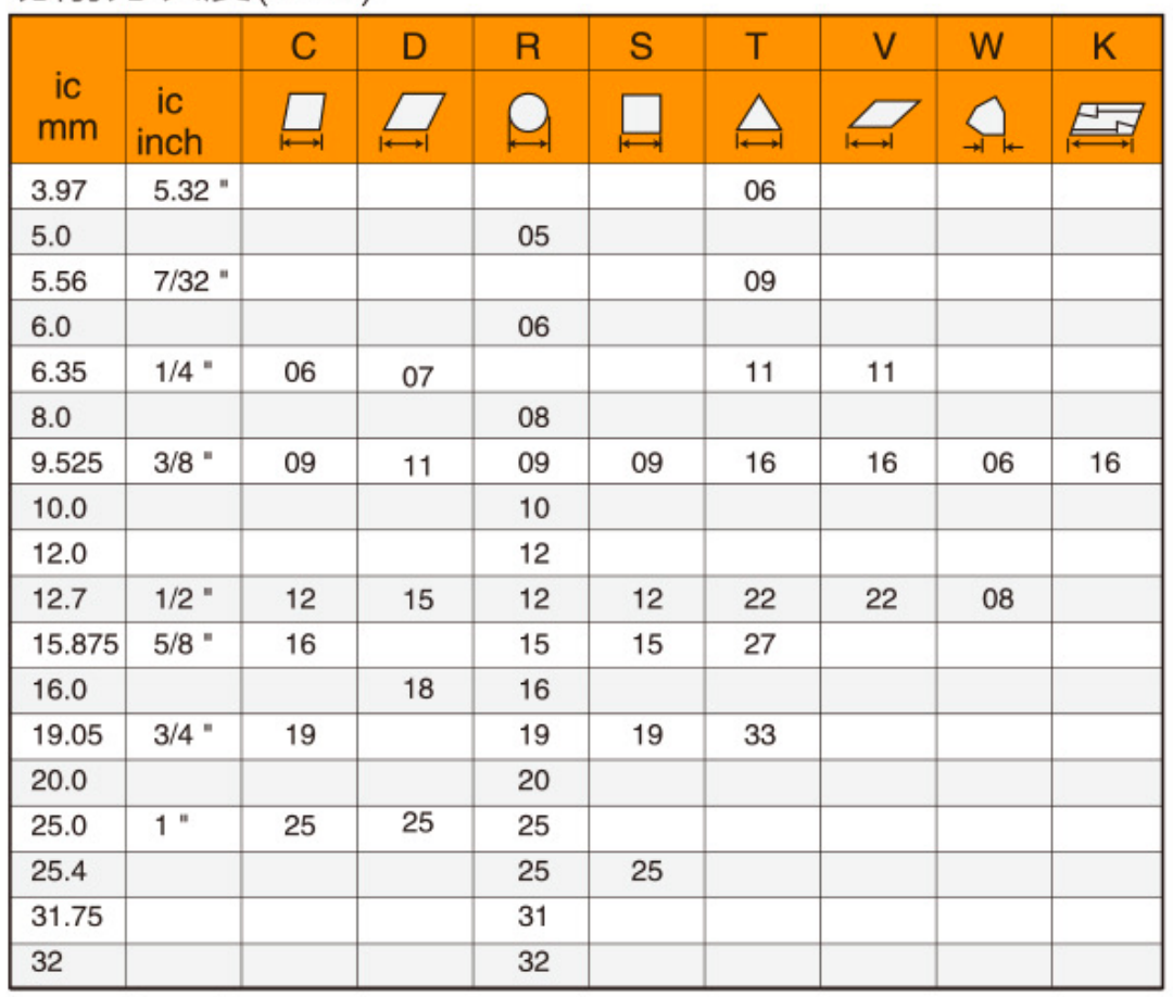 Chipbreaker and clamping form Thickness(mm)